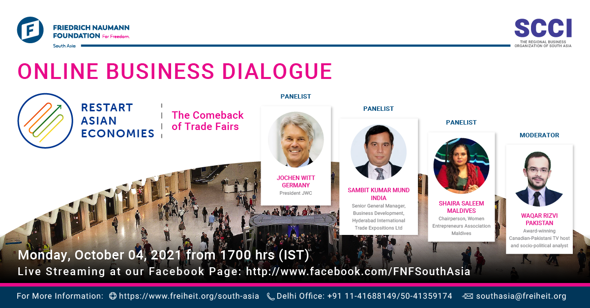 Nach einem Stillstand von fast 15 Monaten mit kurzer Unterbrechung im Herbst 2020 finden jetzt wieder weltweit verstärkt Messen statt. Kaum eine Branche war so abrupt und stark betroffen von der Corona-Pandemie. International anerkannte Experten diskutierten Anfang Oktober 2021 bei der Veranstaltung „Restart Asian Economies: The Comeback of Trade Fairs in South Asia“ über die aktuelle Situation der weltweiten Messebranche und gaben auch einen Ausblick auf die kurz- und mittelfristigen Auswirkungen der Corona-Pandemie.