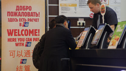 Ein chinesischer Tourist zahlt in Moskau bei Burger King mit UnionPay.