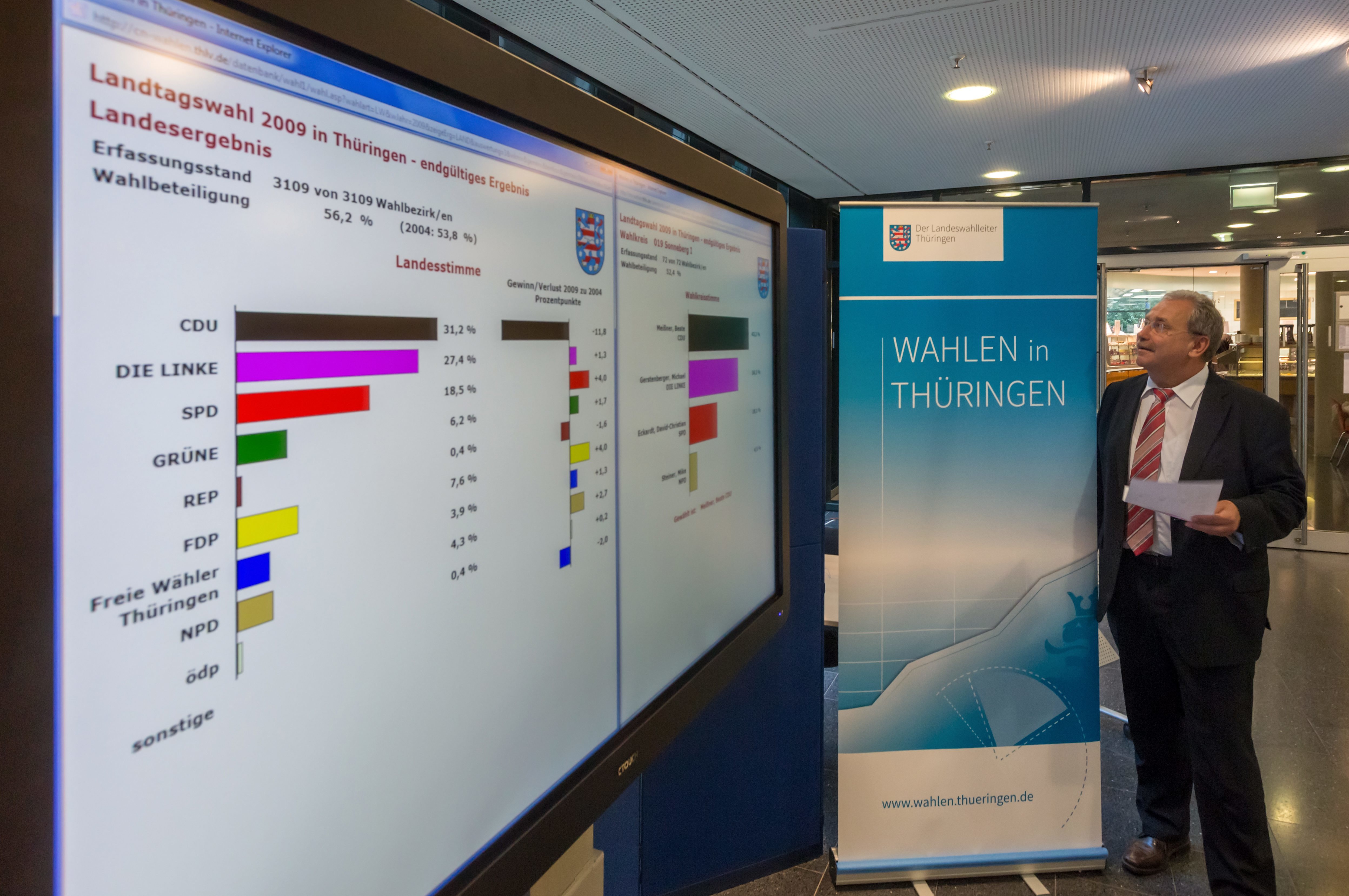Auf den ersten Blick herrscht Klarheit: Die Linke hat die meisten Stimmen erhalten und ist – zum ersten Mal seit 1990 - stärkste Partei geworden. Zweitstärkste Kraft in Thüringen ist die AfD, die mit 23,4 Prozent der Wählerstimmen die CDU mit 21,8 Prozent hinter sich lassen kann. Die SPD ist mit 8,2 Prozent zum ersten Mal seit 1990 in Thüringen einstellig. Die Grünen landen, mit Verlusten und gegen den in Umfragen erkannten Trend, mit 5,2 Prozent knapp im Parlament. Noch knapper macht es – nach dem vorläufigen Endergebnis - die FDP: Sie schafft mit 5,0005 Prozent (laut Landeswahlleiter) den Wiedereinzug in den Landtag von Thüringen.