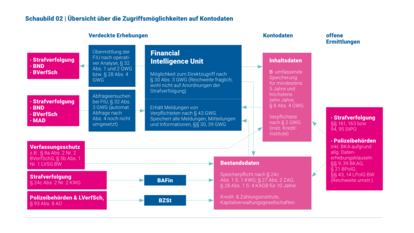 II. Kartographie der Überwachungslandschaft: Für die jeweiligen Zugriffsmöglichkeiten auf Datenbestände lassen sich Übersichtskarten erstellen, die die spezifischen Zugriffspfade der Behörden im Detail aufzeigen. Dadurch entsteht eine plastische Darstellung der verschiedenen Überwachungsszenarien.