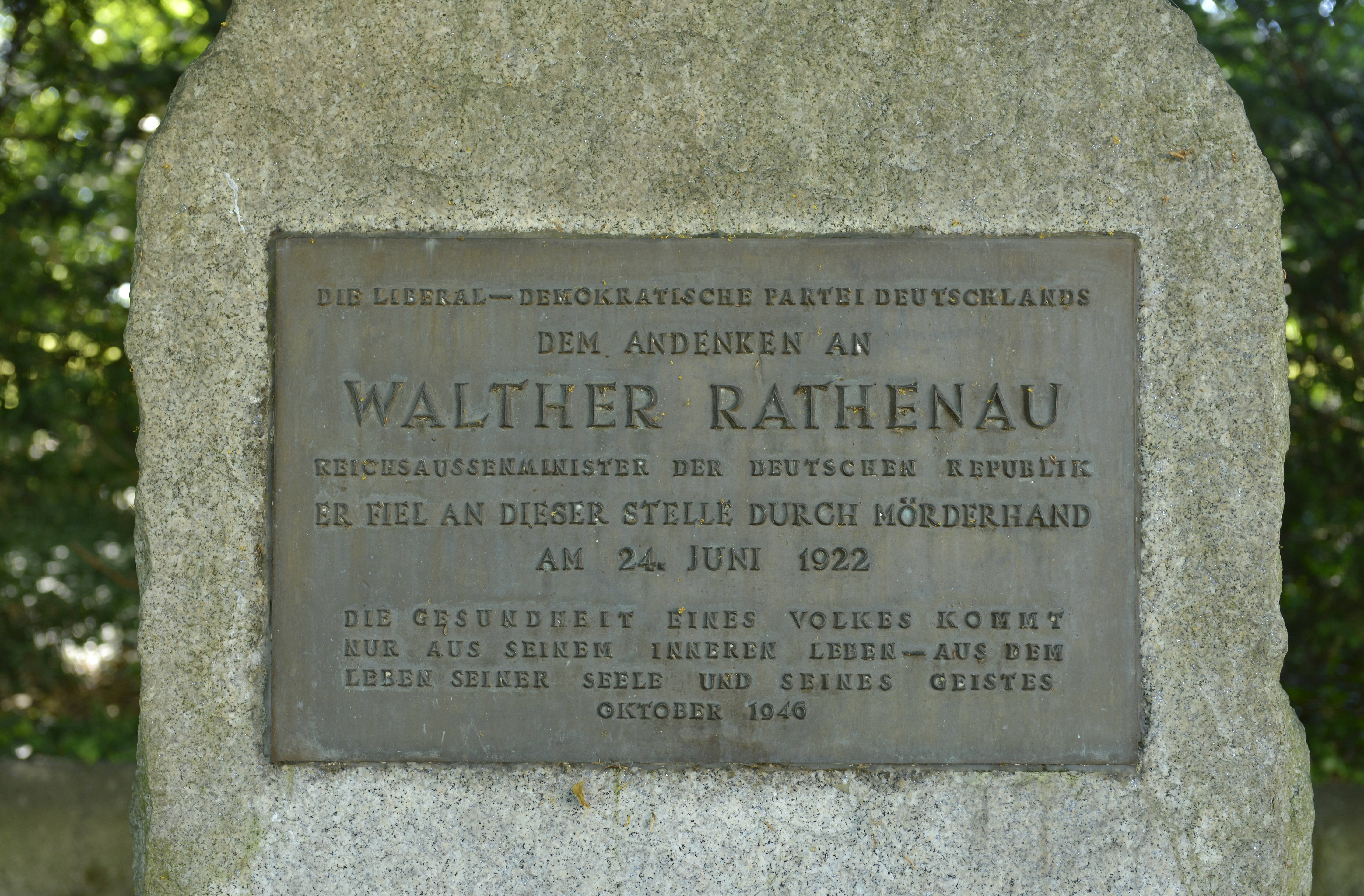 Aber erst der Mord an dem Kasseler Regierungspräsidenten Walter Lübcke am 1. Juni 2019 erinnerte die Öffentlichkeit in Deutschland daran, dass es mit dem Nationalsozialistischen Untergrund NSU wieder eine rechtsradikale Organisation gab, die bereit war, Repräsentanten des Staates heimtückisch zu ermorden. Zwischenzeitlich hatten Mitglieder des NSU bereits ab Mai 2013 wegen Morden und schweren Brandanschlägen vor Gericht gestanden hatten. Spätestens mit dem Mord an Lübcke rückte der Mord an Rathenau wieder aus den Geschichtsbüchern heraus ganz explizit in das Bewusstsein der breiteren Bevölkerung. Dort muss er bleiben, auch nach 100 Jahren.