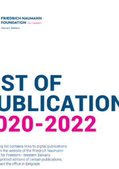 Ferienzeit ist oft auch Lesezeit. Die Friedrich-Naumann-Stiftung Westbalkan hat in den zurückliegenden Jahren eine Fülle von Publikationen herausgebracht, die die Region betreffen wie auch die Entwicklungen in einzelnen Ländern. Die beiliegende Übersicht „List of Publications 2020-2022“ bietet Ihnen nun Gelegenheit, sich über unterschiedliche Politikfelder und gesellschaftliche Herausforderungen noch einmal intensiver zu informieren.