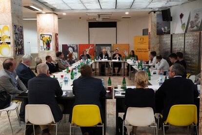 © FOTO: Südosteuropa-GesellschaftEin Abend war dem Treffen mit unabhängigen Journalistinnen und VertreterInnen der Zivilgesellschaft gewidmet, maßgeblich aus dem Partnerspektrum der Friedrich-Naumann-Stiftung für die Freiheit: Ein offener freier Austausch in informeller Atmosphäre.