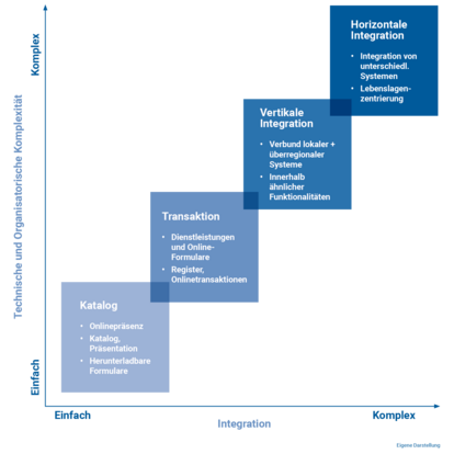 Schon im Jahre 2001 wurde ein Modell entwickelt, das die vier Stufen hin zu einem funktionierenden vollumfassenden E-Government darstellt. Was bedeuten die Stufen der Digitalisierung für Estland?