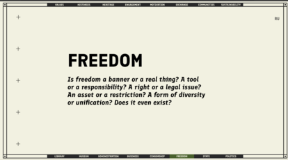 The project, implemented with the support of FNF Russia, traces the hidden debate over freedom and enterprises that was still going on in the hyperregulated cultural sphere of Russia, among active people who were busy custom redesigning the intellectual and creative landscape. It is based on a series of interviews with cultural entrepreneurs in Russia, conducted by the project team in 2020-2022.