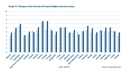 At the same time, the populist threat that is looming in several CEE and WB countries can undo many improvements by dismantling institutional checks and balances that have not yet passed the test of time. The non-oil CIS countries need to acknowledge the fact that there is no sustainable economic growth without private property rights. But their introduction would create social groups not dependent on the state and thus enable their existence outside of the operating clientele network, which could challenge the established political order. This interplay between different groups that govern or want to govern power structures will determine the outcome of property rights in each country.