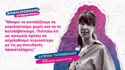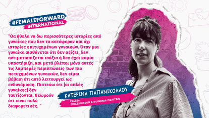 Σε πολλές περιπτώσεις, ορισμένες γυναίκες αισθάνονται ότι: «Εντάξει, δεν είμαι σαν αυτές τις γυναίκες. Δεν υπάρχει λόγος λοιπόν να συμμετάσχω σε αυτή την ΜΚΟ ή να ενταχθώ σε αυτή την ομάδα». Υπάρχουν πάντα περιπτώσεις εξαιρετικά έξυπνων γυναικών, επιτυχημένων γυναικών και γυναικών που έχουν προσφέρει τεράστιο έργο. Πιστεύω ότι [οι απλές γυναίκες] δεν ταυτίζονται, θεωρούν ότι είναι πολύ διαφορετικές», εξηγεί η Κατερίνα.