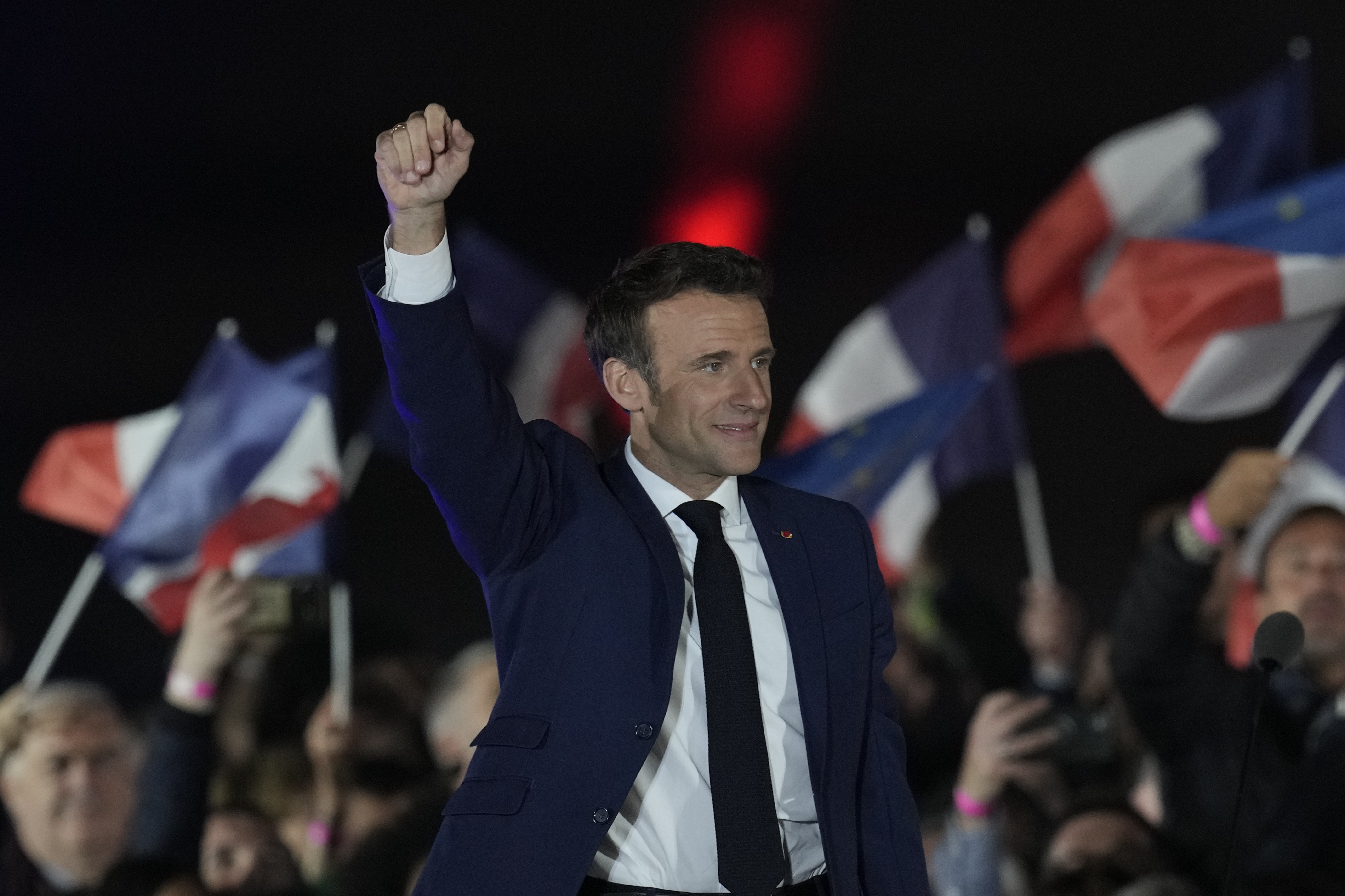 Der französische Präsident Emmanuel Macron feiert am 24. April 2022 mit Anhängern in Paris