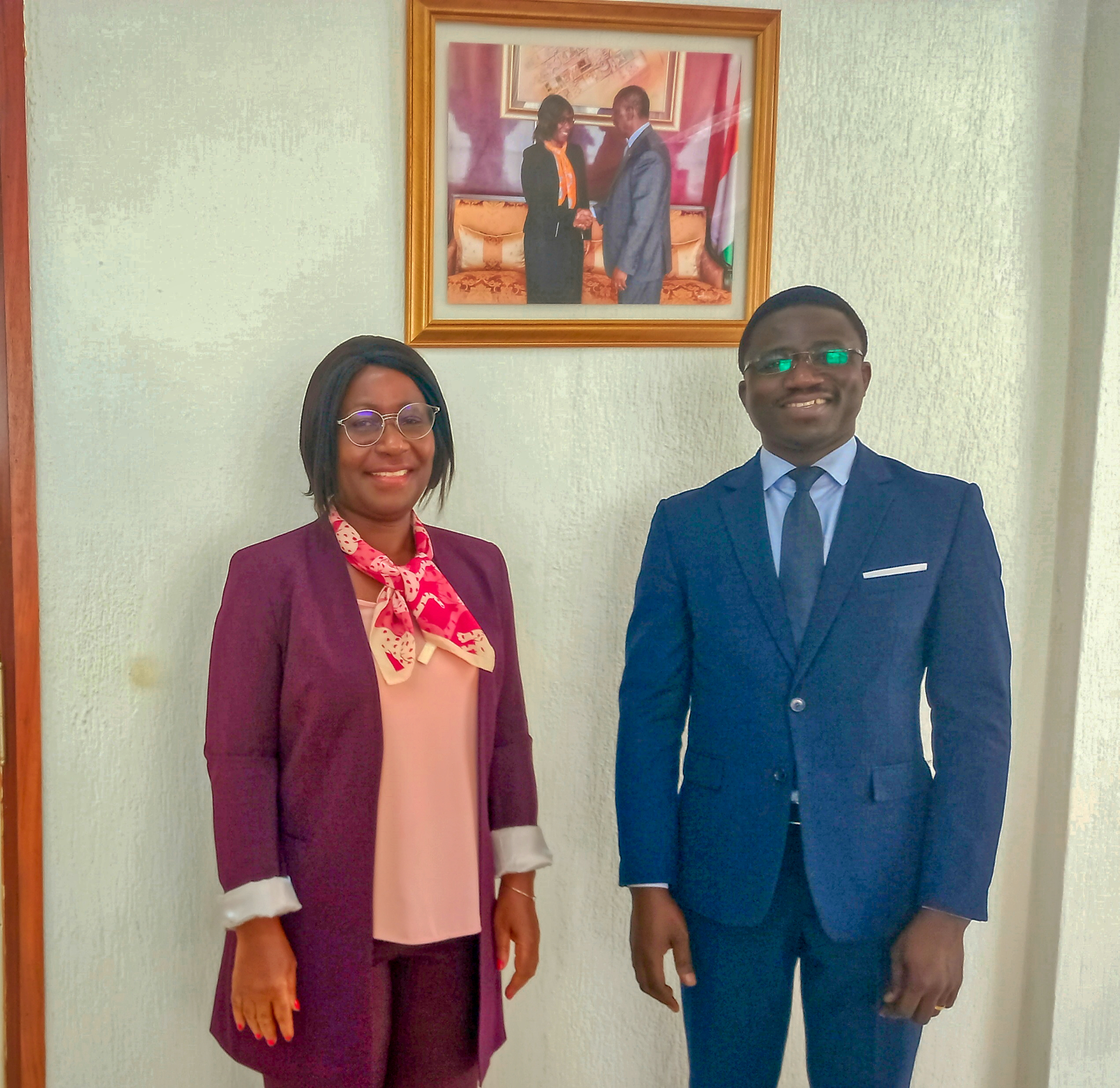 Dans le cadre de l’organisation de la 5ème session de formation en droit international des droits de l’homme organisée par la Fondation Friedrich Naumann et la Fondation René Cassin de Strasbourg (Institut International des Droits de l’Homme), Magloire N’Dehi, Chef de Bureau Côte d’Ivoire de la Fondation Naumann a été reçu en audience à la Présidence de la République, ce Mercredi 22 Septembre 2021, par Madame Zebeyoux Aimée, Magistrat Hors Hiérarchie et Conseillère Spéciale du Président de la République chargée des Droits de l’Homme.