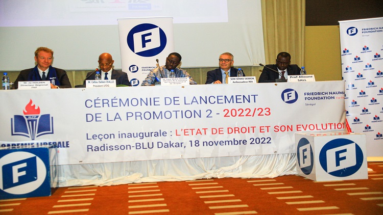 La cérémonie de lancement de la 2ème promotion de l'Académie Libérale de Formation Politique s'est tenue le 18 novembre 2022 à Dakar. La leçon inaugurale portait sur "L'Etat de droit et son évolution.