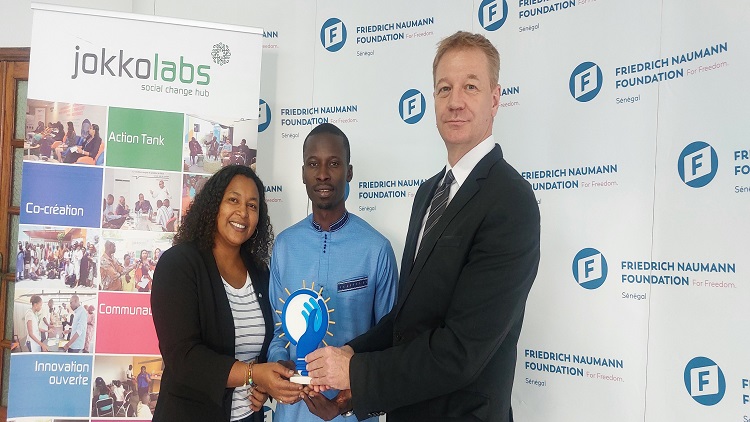 Le trophée de la coupe du monde de l'entreprenariat a été remis à Issa TOURE, lauréat de ce concours avec son projet dénommé PRELANCE. Cet événement a été organisé par Jokkolabs Sénégal avec l'Appui de la Fondation Friedrich Naumann pour la Liberté. Ensemble les deux structures ont mis en place un cadre de collaboration qui a permis de promouvoir et d'accompagner le développement d'une culture de l'entreprenariat et de l'innovation.