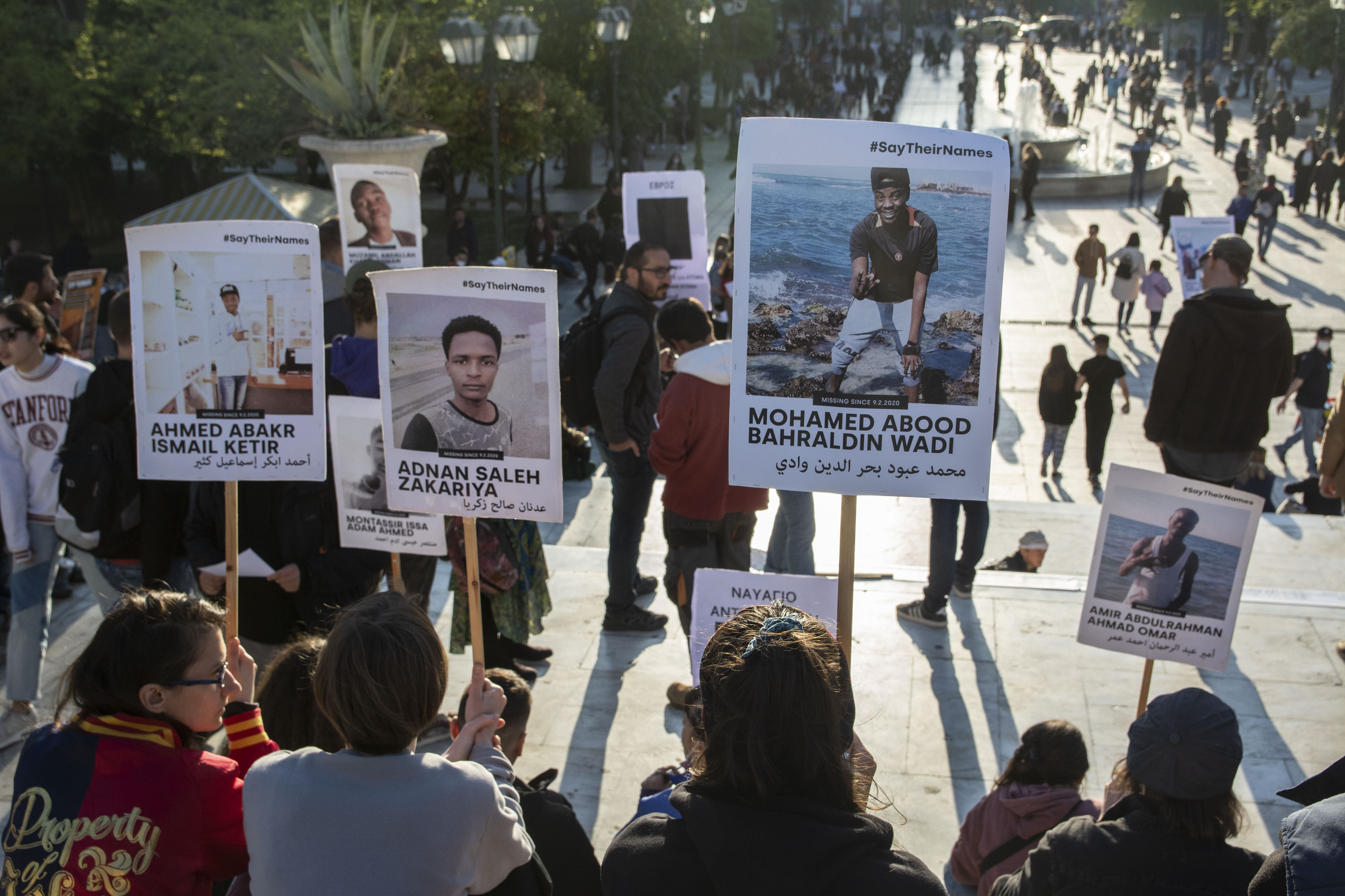 Human rights activists protest over push backs in Athens, Greece.