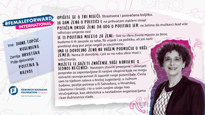 Što činite kada se odlučite vratiti kući nakon desetljeća oblikovanja i uvođenja javnih politika u cijelom svijetu, a nalazite društvo koje je daleko konzervativnije i manje sklono primjeni meritokratskih načela od onoga koje ste napustili? Ako ste stručnjakinja za javne politike i neumorna građanska aktivistica poput Diane Topčić-Rosenberg, učlanit ćete se u novoosnovanu liberalnu stranku i krenuti u borbu za normalizaciju hrvatske politike.