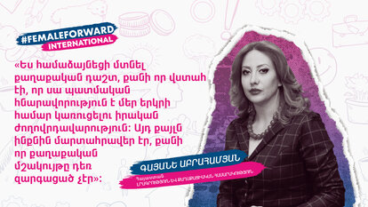 Հայ քաղաքական գործիչ, լրագրող և ակտիվիստ Գայանե Աբրահամյանն իր կյանքի երկար տարիները նվիրել է տարբեր գործերին` սկսած ընտանեկան բռնության մասին իրազեկության բարձրացումից մինչև վաղուց սպասված դատաիրավական բարեփոխումների խթանումը: Իր աշխատանքով նա մարտահրավեր է նետել երկրում տիրող ստատուս քվոյին և բախվել մերժող հռետորաբանության` հաճախ իշխանության շարքերում գտնվող ուժեղ տղամարդկանց կողմից: «Ես ցույց եմ տալիս, որ ինչ-որ բան անելու համար չկան սահմանափակումներ կնոջ կամ որևէ մեկի համար», - ասում է նա, և մինչ օրս նրա կատարած աշխատանքը և կյանքը վստահորեն օրինակն են այն բանի, թե ուր կարող է մարդ հասնել` անկախ միջավայրից, որը ոչ մի կերպ չի նպաստում քաղաքականության մեջ կանանց գործունեությանը: