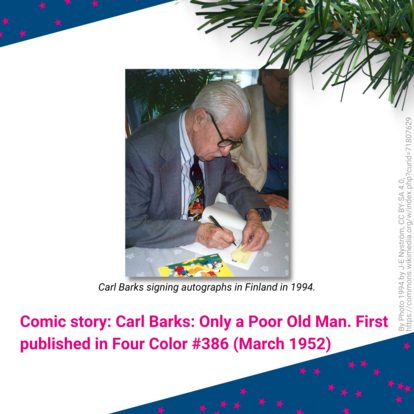 Carl Barks was the greatest storyteller and illustrator among the comic artists employed by Walt Disney. In his wonderful story “Only a Poor Old Man”, Scrooge McDuck's personality is fully developed for the first time. The uncle of the better-known Donald Duck is a major entrepreneur and the richest duck in the world. He likes to bathe in his thalers in his money bin. He is considered a little hard-hearted and thrifty to the point of real avarice.