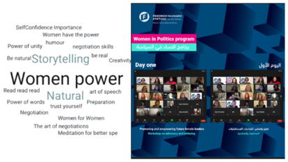 Seeking freedom and equality is a constant global challenge for the offices of the Friedrich Naumann Foundation and supporting our partners in such matters remains our utmost priority. Thus, the offices in Lebanon and Jordan asked the European Dialogue in Brussels and the International Academy for Leadership Visiting Programmes to organise an online workshop for their female partners. We had the great pleasure to facilitate the programme “Women in Politics – Political Savvy Skills for Future Female Leaders” for 17 highly motivated and fascinating female leaders with various backgrounds and expertise.