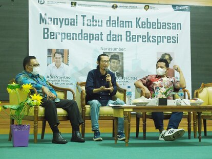 Narasumber dan organizer Diskusi Publik bertajuk Menyoal Tabu dalam Kebebasan Berpendapat dan Berekspresi (10/06/2022) di Aula Student Centre Universitas Islam Negeri (UIN) Syarif Hidayaullah Jakarta.