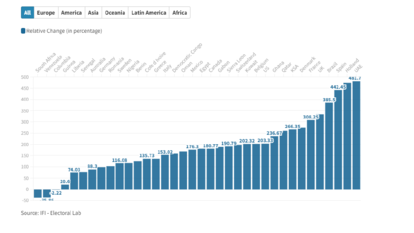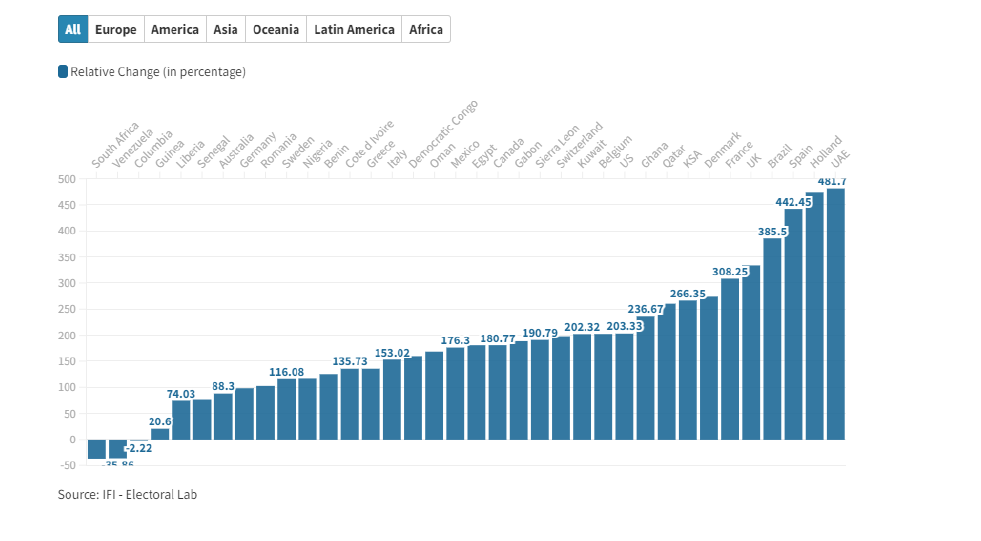 Relative Change in the Numnber of Expat Voters Between 2018 and 2022