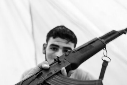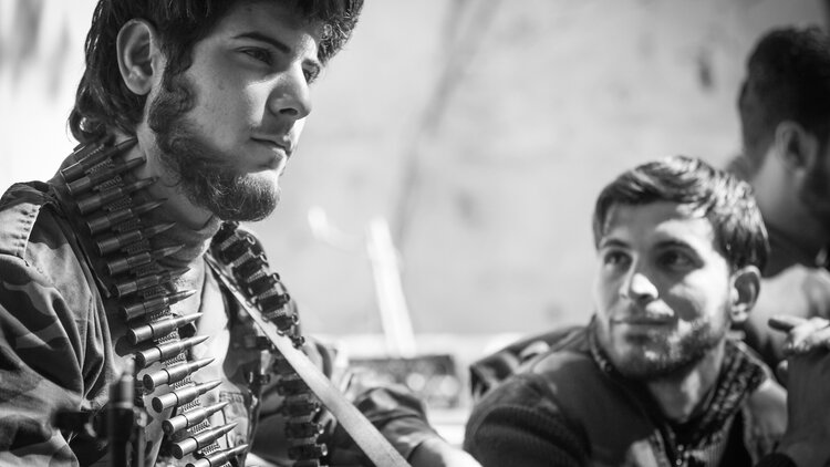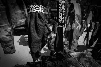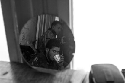 The juxtaposition of photographs and texts below is a part of a work titled Homage to Aleppo. The photos (2012-2014) are captioned with excerpts from George Orwell’s memoir Homage to Catalonia.
