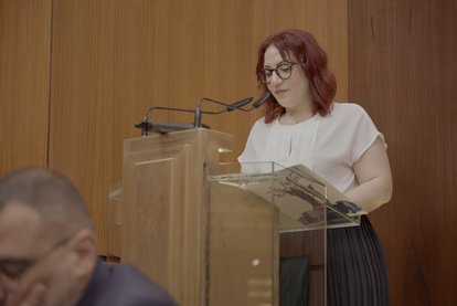 MP. Inaya Ezzeddine delivering a speech on behalf of Speaker of Lebanese Parliament Mr. Nabih Berri