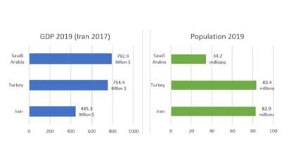 Although, Turkey has been economically reeling recently, with a sharp currency devaluation, it is still the 20th largest world economy, and the second largest in MENA just after the KSA. It is important to note that Turkey is not an oil producing country, as opposed to the KSA, and it still enjoys a strong exports economy (number 27th in the world). Moreover, Turkey is doing much better than many other countries in the unfolding pandemic and economic crunch, especially in MENA, as it has not been affected by the crumbling oil prices, while paradoxically being buffeted by the promise of long-term windfalls of the discovery of large gas fields in the black sea!