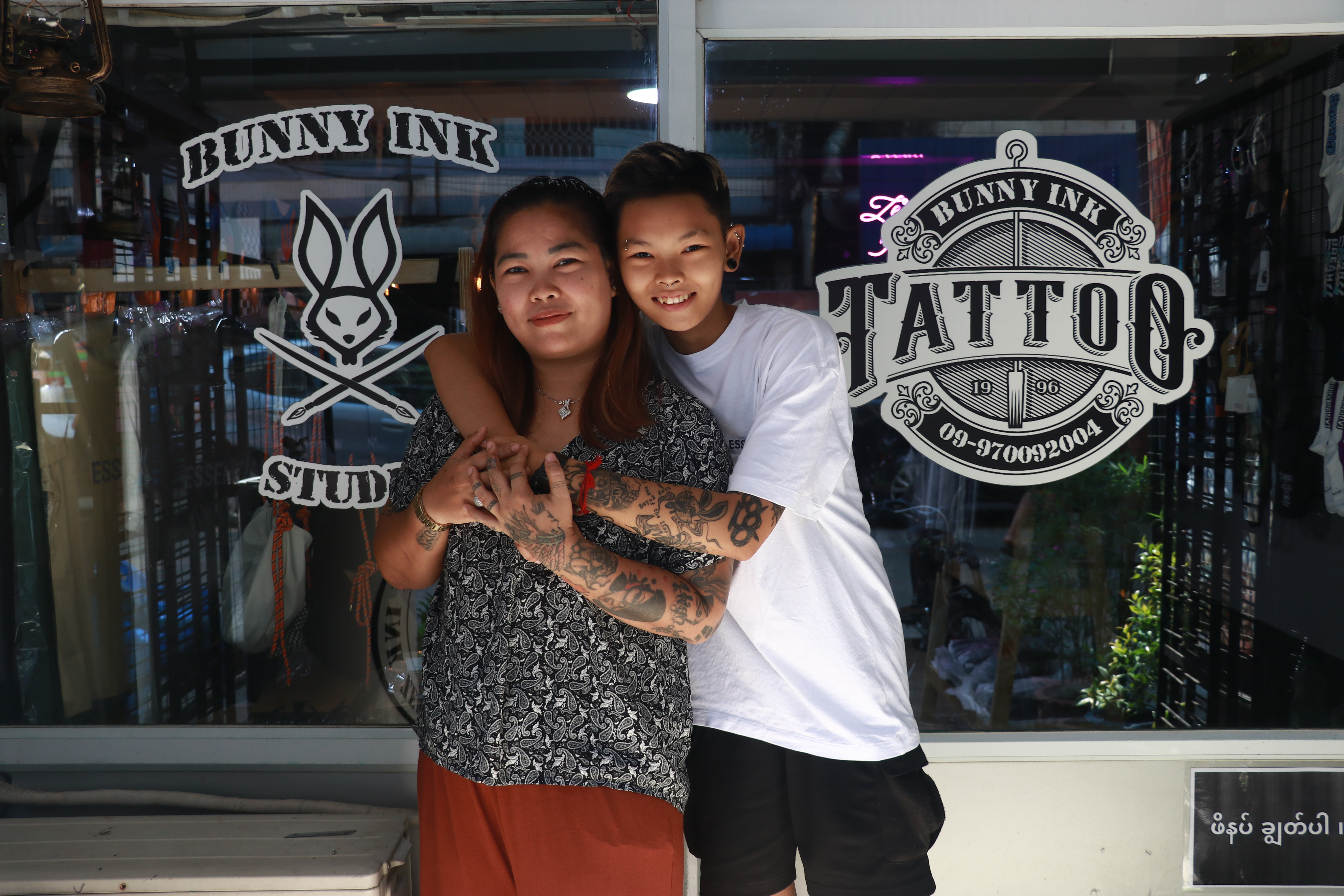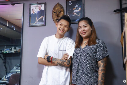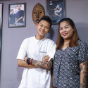 Answer: She started showing interest around the age of 11. She shares some common interests with me. She likes to paint and draws a lot. When I was working as a tattoo artist, she would help out, hanging around the shop. At first, I didn't realize it was her passion. She was just attending school and helping out occasionally. Then one day, when we were out, I saw that one of my shop's employees had a tattoo done by her. It was a small Kayin flag. When I asked where she got it tattooed, she said my daughter did it. When I asked more about when and how it was done, that's when my daughter admitted she had tattooed it on request. I was surprised. You can't just tattoo on someone's skin like that. Tattoos on the skin are permanent. Although laser removals are available nowadays, they don't completely erase the tattoo. After that, she stopped tattooing for a while. Only later did I notice that she hadn’t learned from anyone but was already able to tattoo. Eventually, when she started doing tattoos, she would ask me to look at her work. From there, she really began her journey into tattooing.