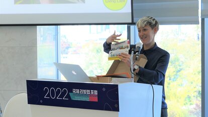 The main forum on the second day, the 3rd of November was opened by cultural performance by sand artist and string quartet. After the opening address of Gun-Woo Do, President of Daegu TP, Frederic Spohr, Head of FNF Korea and Myung Kyun Park, Deputy Minister of KLID also delivered welcoming address to the participants of the forum. Prof. Dr. Evdokimos I. Konstantinidis, Chairperson of the ENoLL Executive Board who couldn’t participate physically gave a congratulatory speech via video message.