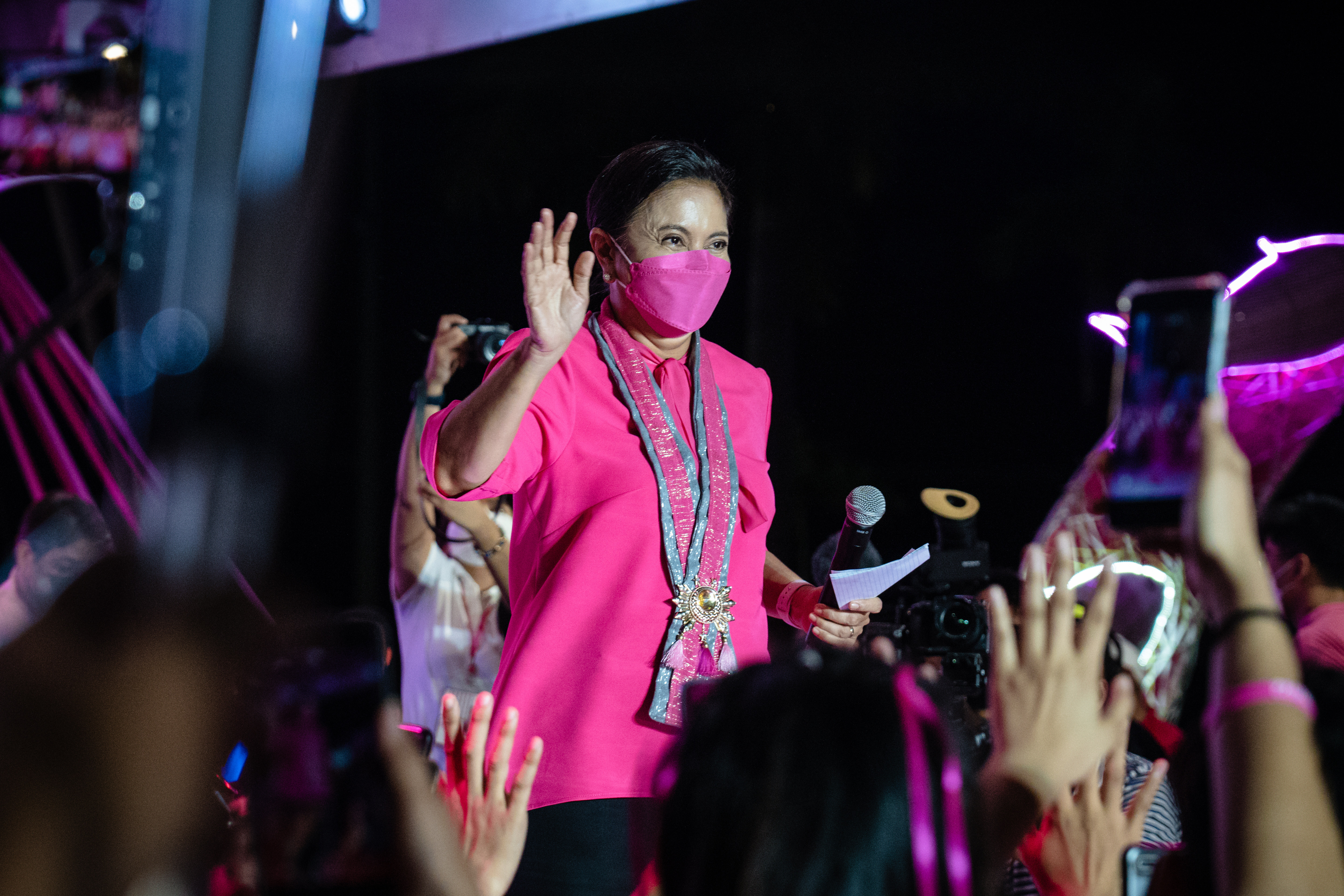 Philippines Vice President Leni Robredo waves supporters during the campaign rally