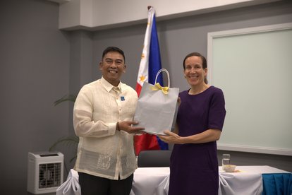 Dr. Almut Besold and Hon. Richard Palpal-latoc share a token to mark the close partnership between FNF Philippines and the CHR.