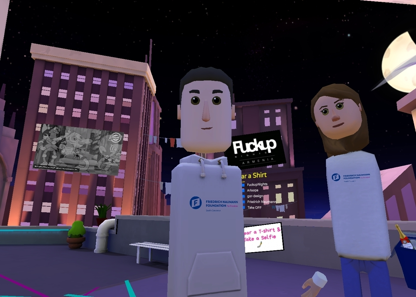 Friedrich Naumann Foundation for Freedom South Caucasus in cooperation with Fuckup Nights Armenia organized a special VR event, which involved various entrepreneurs sharing the stories of their failures and interacting with the audience. But unlike normal events, this event was held entirely in the virtual world, where participants could use either their VR glasses or PCs to take part. We are very happy with the feedback and want to congratulate the organizers Hayarpi Sahakyan and Vach Ji Jihanyan as well as the ARLOOPA team for their great technical work in creation of our virtual world.