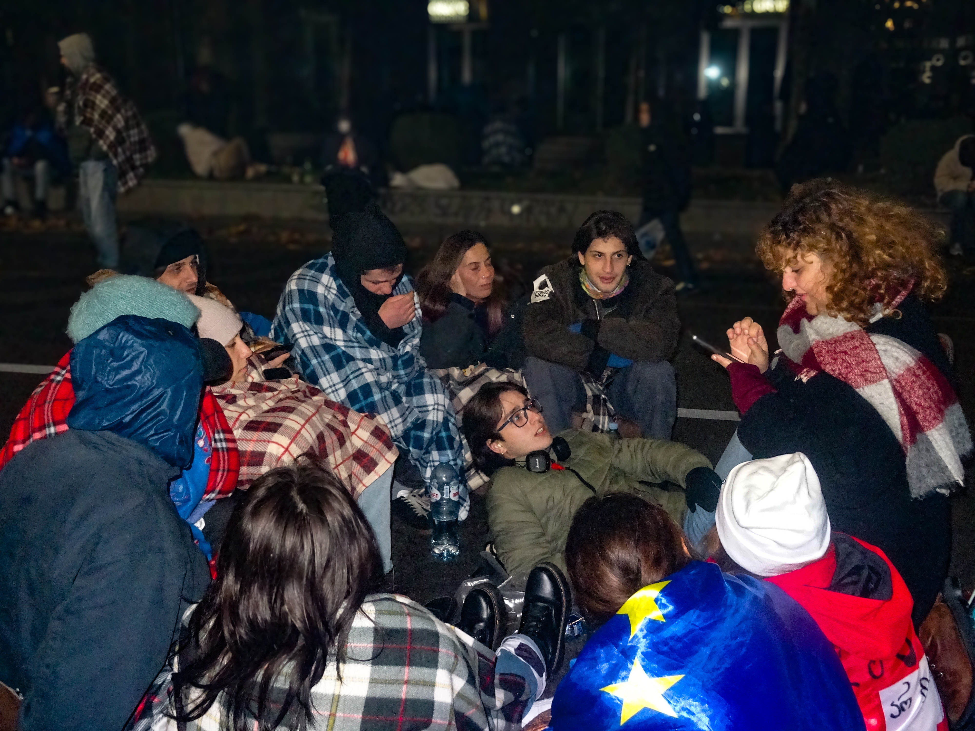 On November 14, 2024, students came together in Batumi for the first time to protest against Georgia's rigged elections and for new elections with their sit-in. They also explicitly addressed the other students in the country and called on them to join their protest. Numerous student movements from different universities in Tbilisi came together and joined the protest movement. Davit, a 19-year-old student who is part of the movement from Ilia State University, explains that this was also an “act of solidarity”, as they found themselves in the same difficult situation as their fellow students in Batumi.