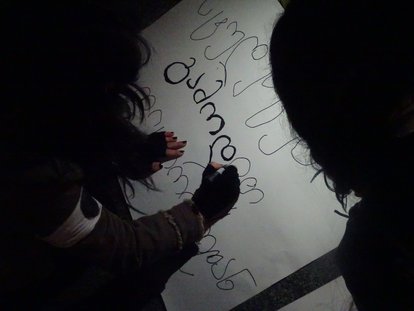 Protest action: joint writing of protest signs on November 18, 2024 by students from Ilia State University in front of Tbilisi