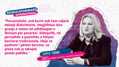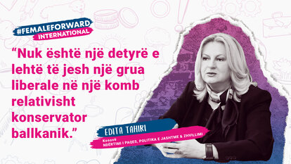 Sidoqoftë nuk është detyrë e lehtë të qenit një grua liberale në një komb relativisht konservator ballkanik. "Nga fillimi në Kosovën e lirë ka qenë një proces transformues, dhe unë do të thoja tani se duhet kohë që të ndodhë një transformim i vërtetë drejt vlerave reale demokratike," thotë Tahiri. Ka pasur shumë zhvillime pozitive dhe progresive, si dhënia e lirive të barabarta (dhe madje preferenciale në disa aspekte) për serbët e Kosovës dhe pakicave të tjera ("liria duhet t'u shërbejë të gjithëve, jo vetëm fituesve," vuri në dukje Edita Tahiri) dhe futjen e kuotave gjinore për të rritur pjesëmarrjen e femrave në politikë. Mbeten disa probleme që duken tradicionale për gjithë rajonin, nga ato më kryesoret, natyrisht, janë korrupsioni dhe mungesa e llogaridhënies për politikanët në pushtet.