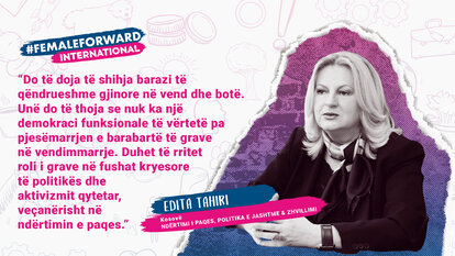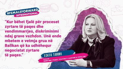 “Do të doja të shihja barazi të qëndrueshme gjinore në vendin tim dhe në botë; Unë do të thoja se nuk ka një demokraci funksionale të vërtetë pa pjesëmarrjen e barabartë të grave në vendimmarrje,” nënvizon ajo, duke thënë se roli i grave duhet të rritet në fushat kryesore të politikës dhe aktivizmit qytetar, veçanërisht në ndërtimin e paqes. "Kur bëhet fjalë për proceset zyrtare të paqes dhe vendimmarrjen, diskriminimi vazhdon," thotë diplomatja, duke shtuar se ajo ende mbetet gruaja e vetme në Ballkan që ka udhëhequr negociatat zyrtare të paqes.