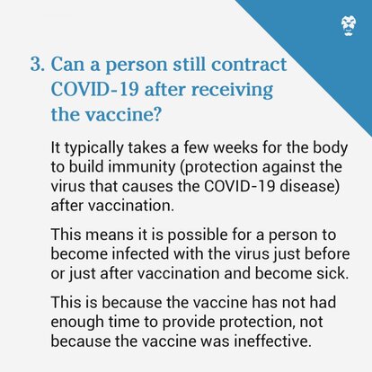 Can a person still contract COVID–19 after receiving the vaccine?