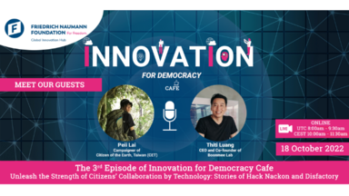 The Friedrich Naumann Foundation for Freedom (FNF) promotes democracy, human rights and economic freedom. In Taiwan, the FNF Global Innovation Hub was established in 2021. The Hub focuses on “digital transformation” and “innovation for democracy”, aiming to support the Friedrich Naumann Foundation on its way to becoming a creative innovation platform for liberalism. The Global Innovation Hub works with The Open Culture Foundation (OCF), Taiwan Youth Association for Democracy (TYAD), People Powered and other like-minded partners. Should you have questions or suggestions about our work, please contact us. You can also meet our team here.