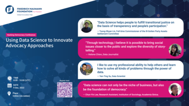 On December 9, 2022, FNF Global Innovation Hub held the “Hacking Democracy Conference: Using Data to Innovate Advocacy Approaches”. By introducing the knowledge of data science though training as well as sharing the case of how Taiwan applies data science to facilitate transitional justice, we helped advocates better understand how to systematically collect and process data and to transfer them into useful information.