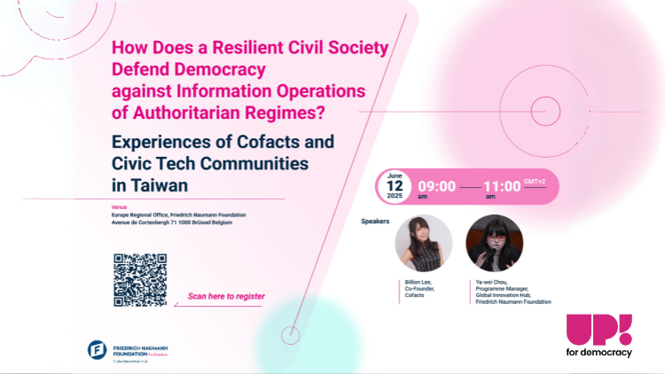 The resilience of civil society is one of the most important elements in countering the growing influence of authoritarian regimes. But how can we sustainably strengthen, inspire, and nurture it? Explore this with Cofacts and us at the How Does a Resilient Civil Society Defend Democracy against Information Operations from Authoritarian Regimes? Experiences of Cofacts and Civic Tech Communities in Taiwan panel on June 12, 2025, 09:00-11:00, GMT+2, at the FNF Europe Regional Office in Brussels (Avenue de Cortenbergh 711000 Brüssel Belgium)! Click here to register before June 9.