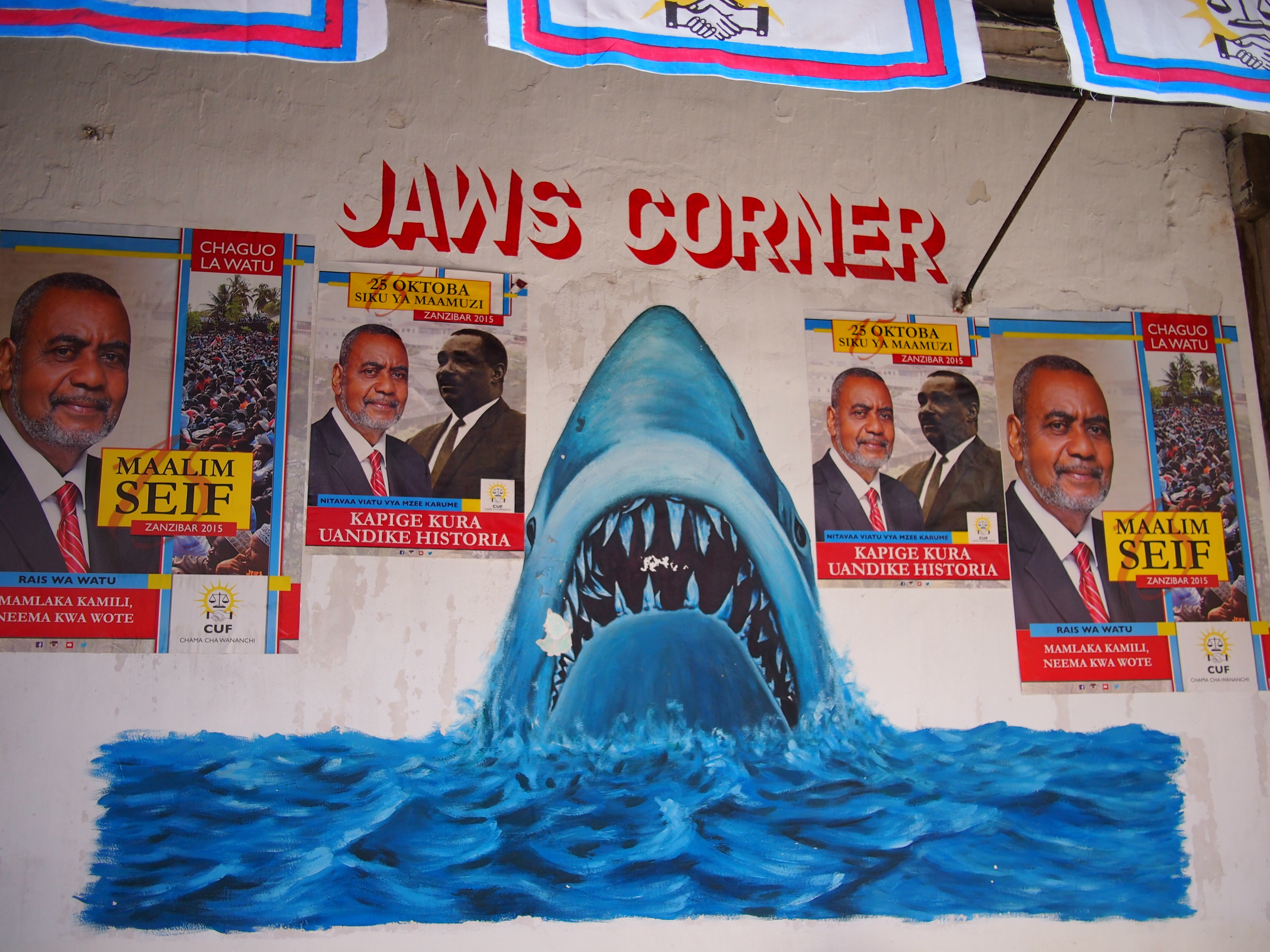 Stone Town, Zanzibar, Tanzania - November 27, 2015: A painting in Jaw's corner in Stone Town, that at the time acted as the political centre of the opposition party.