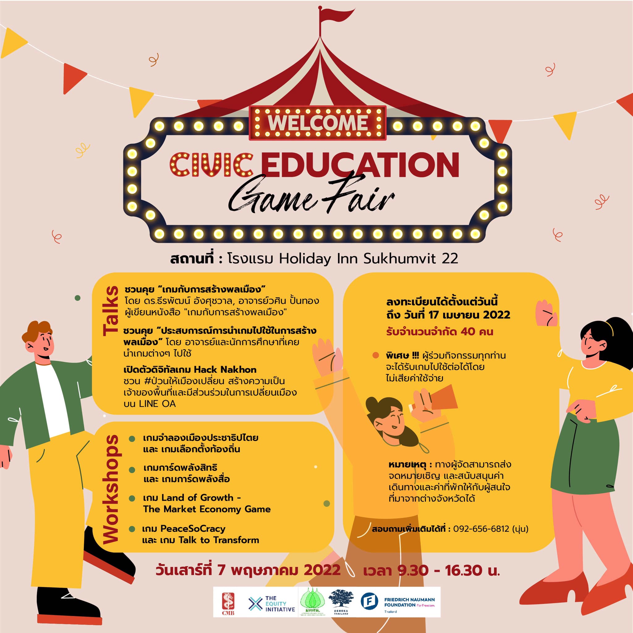 เชิญชวนครู นักการศึกษา นักกิจกรรม และผู้สนใจ ลงทะเบียนเข้าร่วมกิจกรรม Civic Education Game Fair