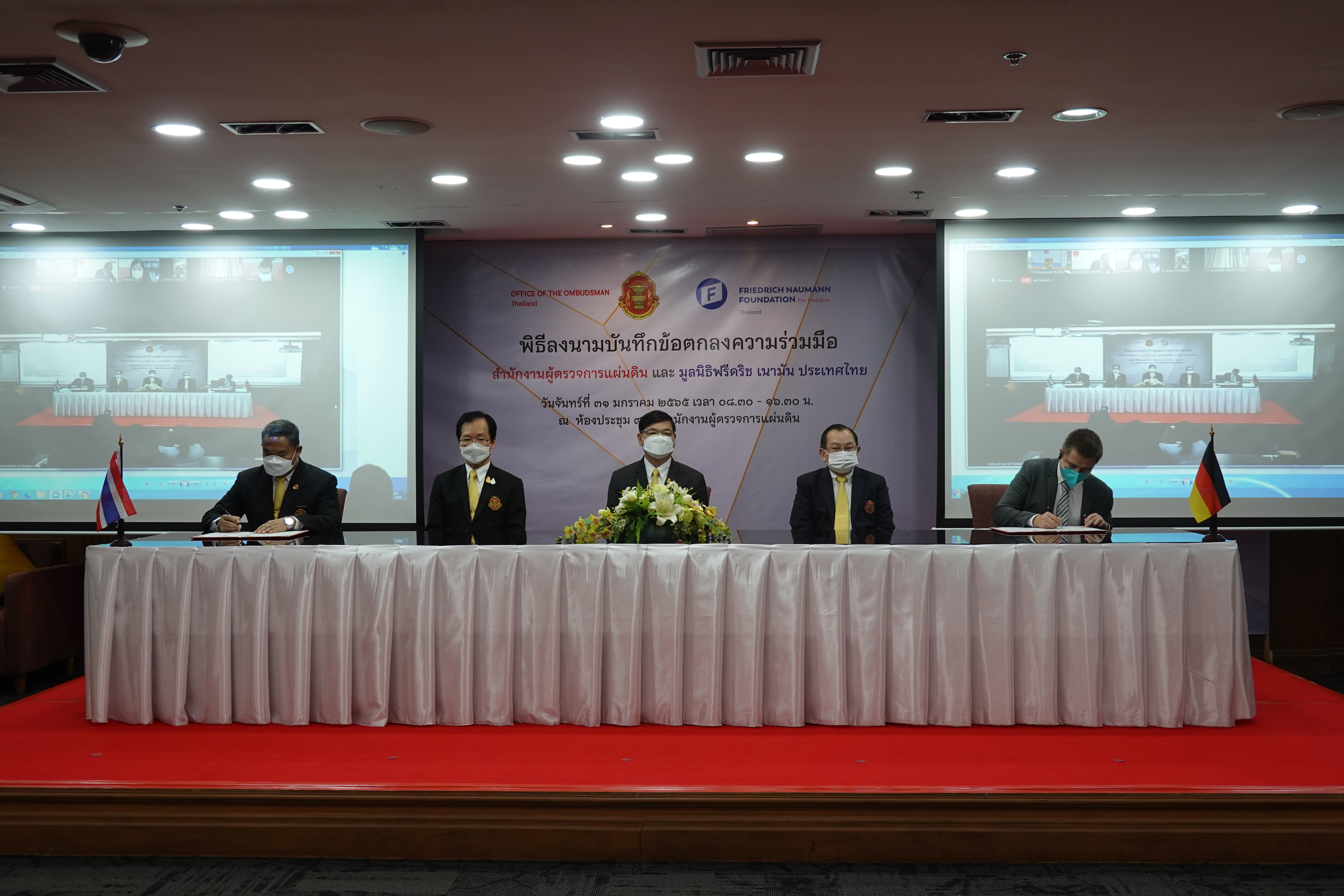 กิจกรรมความร่วมมือ พิธีลงนามบันทึกข้อตกลงความร่วมมือ ระหว่างผู้ตรวจการแผ่นดิน และ มูลนิธิฟรีดริช เนามัน ประเทศไทย