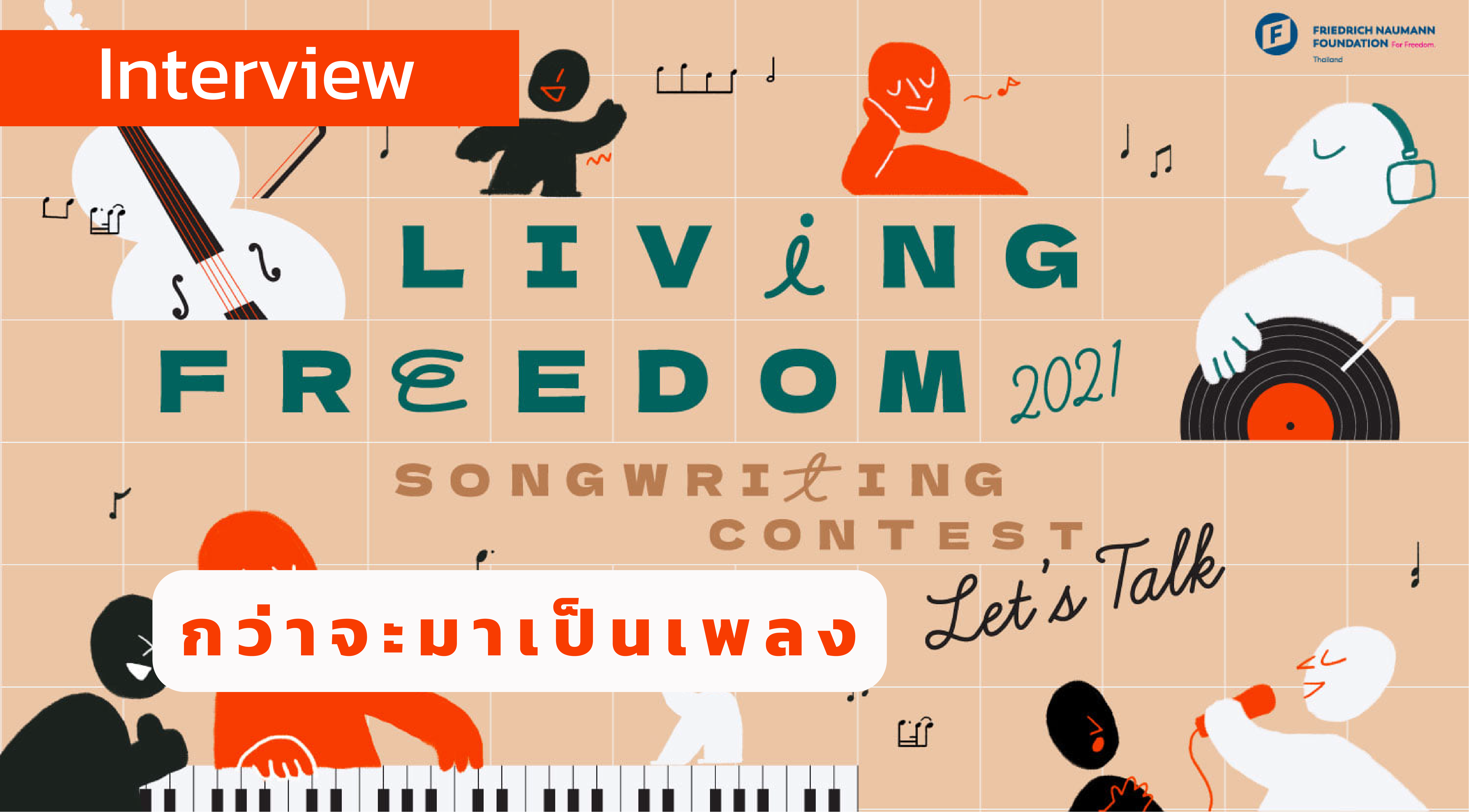 สถานการณ์โควิดตลอด 2 ปีที่ผ่านมา ทำให้หลายอย่างเปลี่ยนไป ไม่ว่าจะเป็นการเรียน การทำงาน วิธีปฏิสัมพันธ์กับผู้คน ทำให้หลายครั้งเราใกล้กันแต่เราก็ไกลกัน วันนี้มูลนิธิฟรีดริช เนามัน ประเทศไทย เลยชวน นักร้อง นักดนตรี นักแต่งเพลง 3 คนที่ชนะการประกวดโครงการ Living Freedom Song Writing Contest 2021 : Let’s talk มาคุยกันว่าที่ผ่านมาแต่งเพลงกันยังไง เจออะไรกันมาบ้าง มีมุมมองต่อเรื่องต่าง ๆ ในสังคม ไปจนถึงมุมมองต่อการกลับมามีปฏิสัมพันธ์กันอีกครั้งผ่านการพูดคุยยังไง