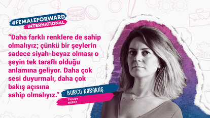 Çalışma ortamı olarak medyaya gelince, cam tavan olduğuna inanıyor. Kendisi sahada çalışma, depremleri haber yapma ve çatışma bölgelerinde bulunma fırsatı bulsa da hala erkek egemenliği var. “Erkeklerin ağ kurduğunu ve medyadaki erkeklerin kadınlara karşı nasıl birbirlerine sırtlarını yasladıklarını ve dayanışmaya sahip olduklarını görüyorum. Bunu görüyorum ve bundan hoşlanmıyorum. Erkek egemen medya nasıl mümkün olabilir? Kadınları dışlayan erkek ağı nedeniyle mümkün” diye açıklıyor Burcu. “Erkeklerin hakim olduğu TV programları var ve sadece sunucular kadın. Hatta kadın haklarından bahsediyorlar. Altı adam televizyonda kadın hakları hakkında konuşuyor. Bu çok saçma!", acı acı gülüyor.