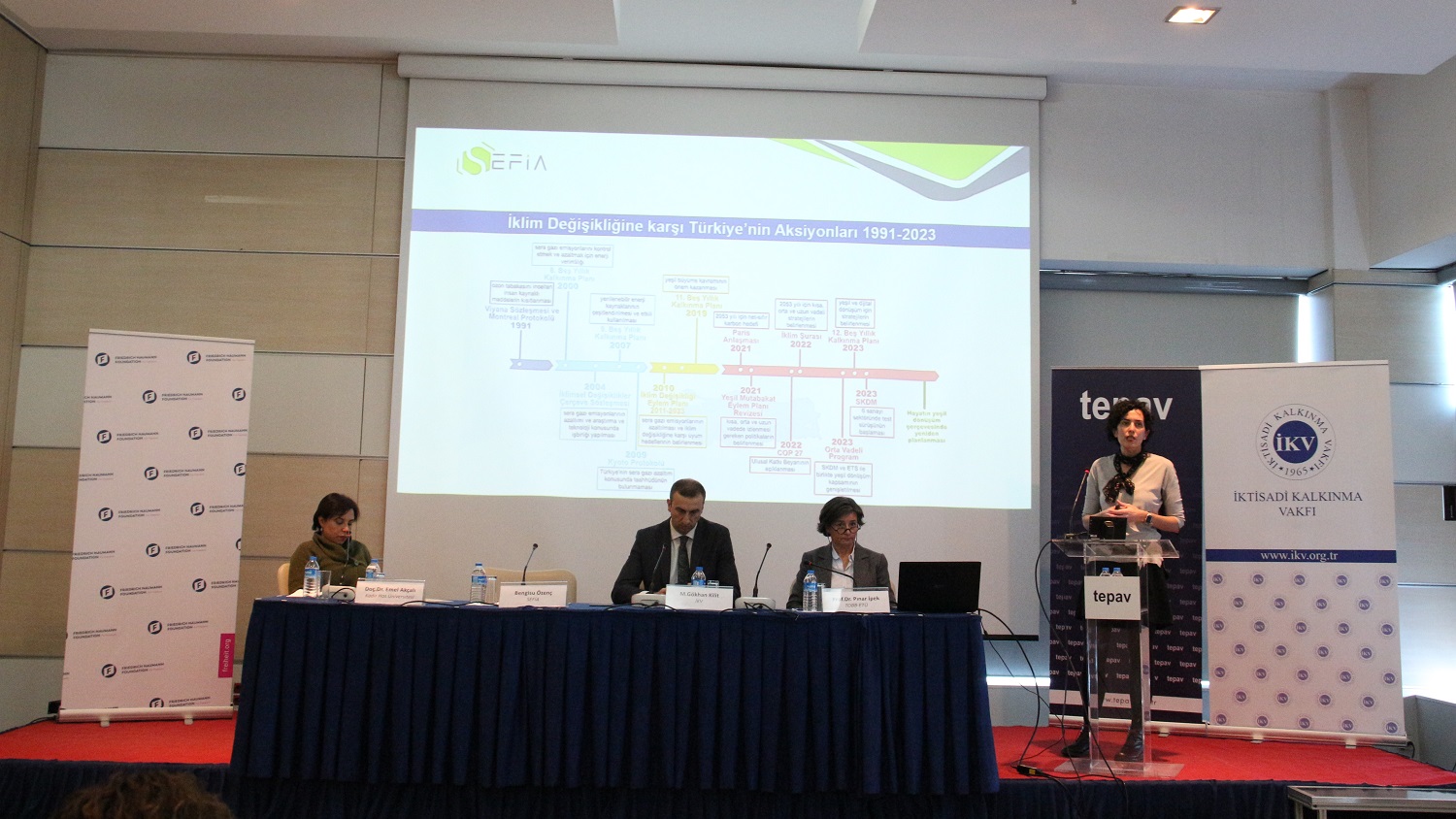 İktisadi Kalkınma Vakfı (İKV) ve Friedrich Naumann Vakfı tarafından, Türkiye Ekonomi Politikaları Araştırma Vakfı (TEPAV) ve İstanbul Politikalar Merkezi (İPM) iş birliğinde düzenlenen “Avrupa Yeşil Mutabakatı ve Türkiye’nin İklim Politikası Açısından Etkileri” toplantısı, katılımcılara değişen çevre politikaları ve bunların Türkiye’ye çeşitli alanlardan etkileri ile ilgili değerli bilgiler sundu. Akademisyenler, öğrenciler, uzmanlar ve elçilik temsilcileri gibi farklı arka planlardan gelen katılımcılar, 3 farklı oturumdan oluşan toplantıda alanlarında önde gelen isimlerden faydalandılar.