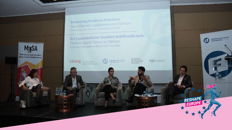 İş Uygulamalarını Yeniden Şekillendirmek: Tedarik Zinciri Yasası ve Türkiye" konulu panel, AB'nin Kurumsal Sürdürülebilirlik Durum Tespiti Direktifi ve Almanya'nın LkSG'sinin (Tedarik Zinciri Durum Tespiti Kanunu) Türkiye-Avrupa ve Türkiye-Almanya ticari ilişkileri üzerindeki etkilerini tartışmak üzere iş dünyası, sivil toplum ve medyadan uzmanları bir araya getirdi. Etkinlik, sorumlu iş yapma konusunda artan beklentileri ele almayı ve çeşitli paydaşlar arasında işbirliği yollarını keşfetmeyi hedef aldı.