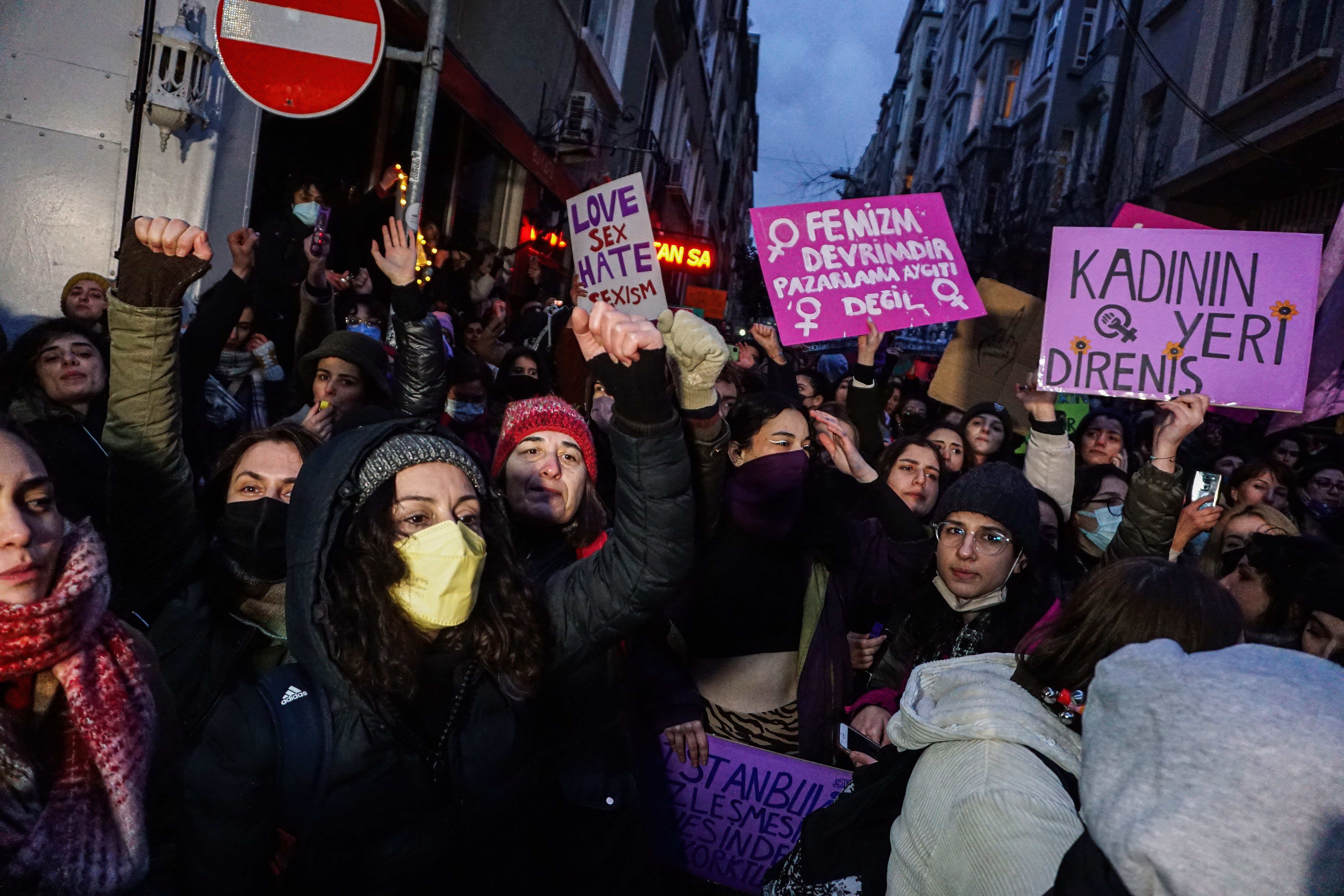 Demonstranten anlässlich des Internationalen Frauentag am 8. März 2022 in Istanbul