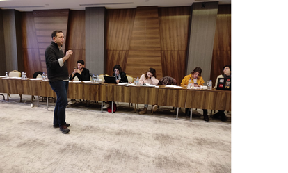 Üçüncü günün “Uluslararası Medya Okuryazarlığı- Çatışmalı Ortamlarda Gazetecilik Etiği ve Pratik Sorunlara Çözüm Önerileri” başlıklı ikinci oturumunda Bahçeşehir Üniversitesi İletişim Fakültesi öğretim üyesi, gazeteci Dr. Ayberk Can Ertuna, çatışmalı ortamlarda gazetecilerin sorumluluklarını katılımcılarla paylaştı. Ertuna, çatışmalı ortamlarda çatışma taraflarının çıkarları doğrultusunda yaptıkları manipülasyonlara alet olmadan insan kayıplarını anlatmanın gazetecinin öncelikli sorumluluğu olduğunu aktardı. Çatışmalı ortamlardan gelen bilgileri haberleştirmede kullanılan dilin sahada yansımaları olacak kadar önemli olduğunu paylaşan Tuna, katılımcıları dağıttığı bir senaryo üzerinden haber yazmaya davet etti. Yazılan haberleri katılımcılar ve Ertuna birlikte değerlendirdi.