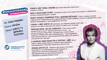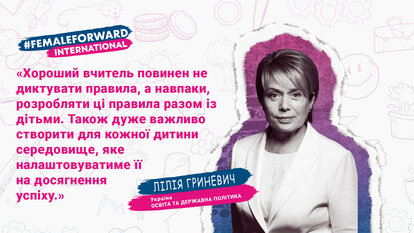 Твердо вірячи в девіз Нельсона Мандели, що освіта — це найпотужніша зброя, яку можна використовувати, щоб змінювати світ, Лілія Гриневич спиралася на свій авторитет, залучаючи інших, і зуміла перетворити стару радянську шкільну систему на таку, де кожну дитину заохочують формулювати та відстоювати власні ідеї. Як перша жінка-міністр освіти в країні, Гриневич ініціювала широку та системну реформу, завдяки якій школи стали відкритішими та демократичнішими.