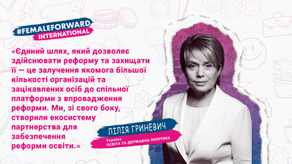 «Єдиний шлях, який дозволяє здійснювати реформу та захищати її, це залучення якомога більшої кількості зацікавлених осіб до спільної платформи з впровадження реформи. Ми, зі свого боку, створили екосистему партнерства для забезпечення реформи освіти», — наводить приклад Лілія Гриневич.