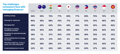Hơn nữa, quản lý nợ là thử thách đối với 62% người tiêu dùng tại Việt Nam, trở thành thách thức quản lý tài chính lớn thứ 2 của họ. Đáng lo ngại, 45% người tiêu dùng Việt Nam nhận ra rằng họ gặp khó khăn trong việc quản lý tiền bạc, đây cũng là tỉ lệ cao nhất trong các quốc gia được khảo sát.